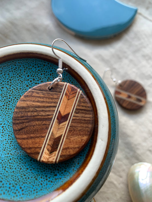 "Chevrosa Chic Earrings – Bolivian Rosewood with Chevron Inlay | Sjarel Handmade Jewellery"