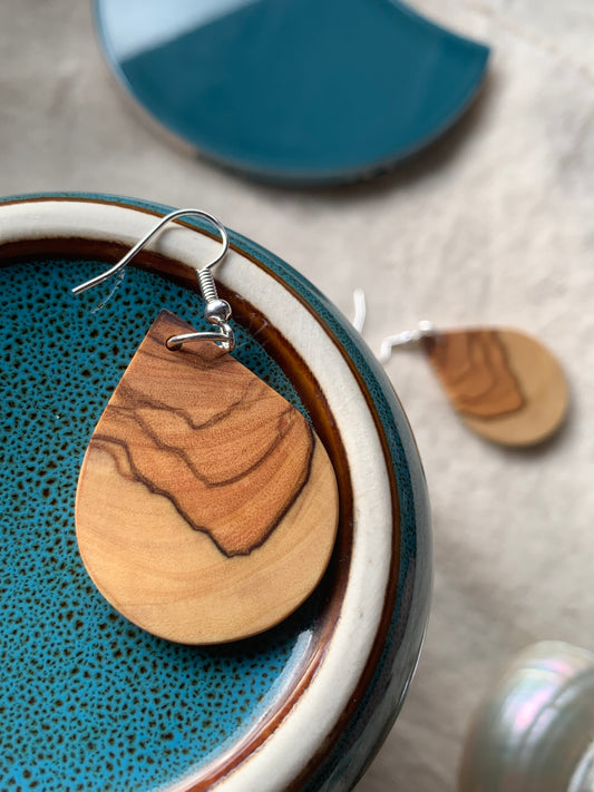 Confido Olive Teardrops – Handcrafted Olive Wood Teardrop Earrings | Sjarel Handmade Jewellery